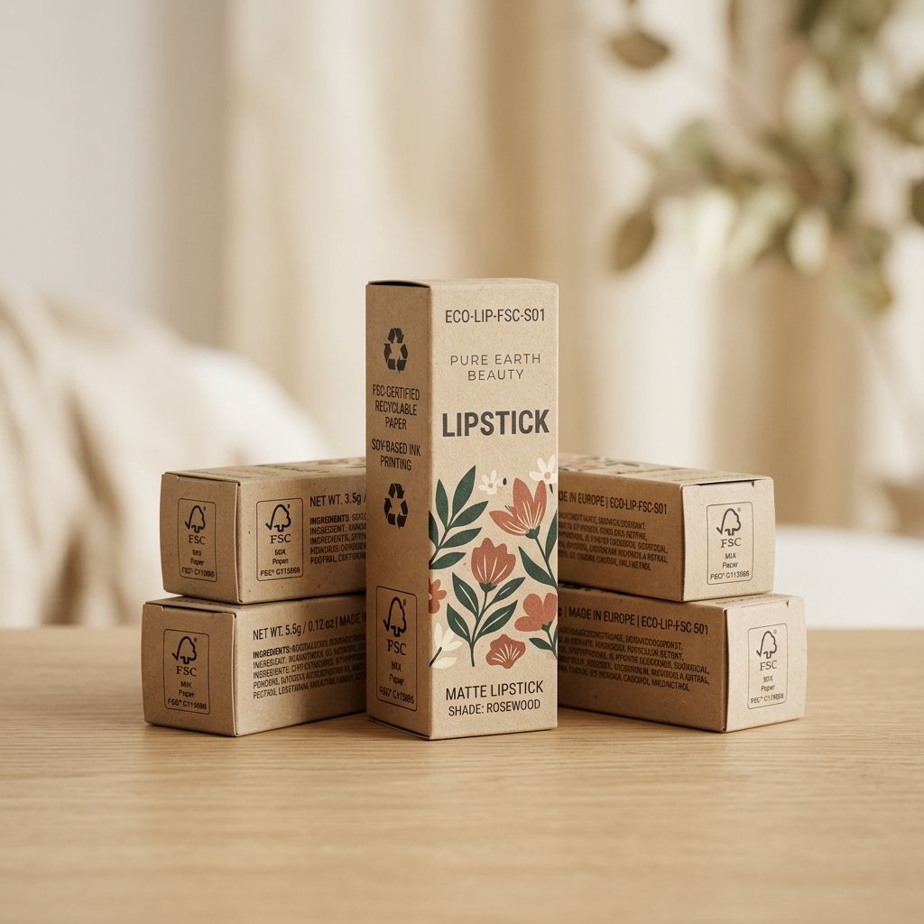 Upgrade your brand with our FSC-certified recyclable paper lipstick boxes. Featuring eco-friendly soy-based ink printing, these biodegradable beauty boxes offer a premium, sustainable alternative to traditional packaging. Designed for durability and aesthetic excellence, they function perfectly as branded beauty shipping boxes, ensuring your products are protected and your environmental values are clear to every customer.
